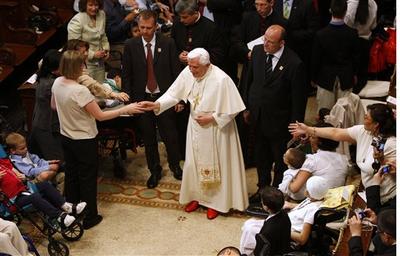 Benedict XVI meeting with disabled youth at St. Joseph‘s Seminary in Yonkers, NY.