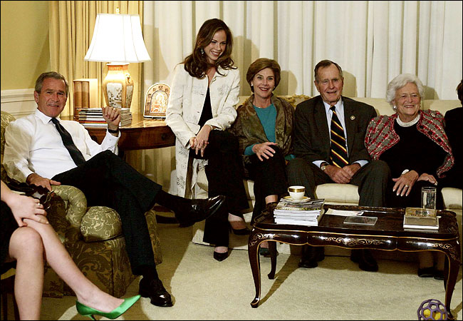 The picture of Our Lady is next to George Bush’s daughter Barabara