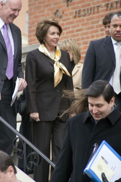 A funeral was held at St. Aloysius Church on Thursday, February 1, 2007 for former congressman Fr. Robert Drinan. Eulogists included Senator Edward Kennedy and House Speaker Nancy Pelosi. Rev. Drinan was a Roman Catholic priest who served in the House of Representatives from 1971-1981. Excerpts from these Eulogies
