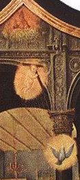 Detail of Unborn Christ Child – Annunciation – as the Hunt of the Unicorn by Erfurt St. Severi (1470-80)